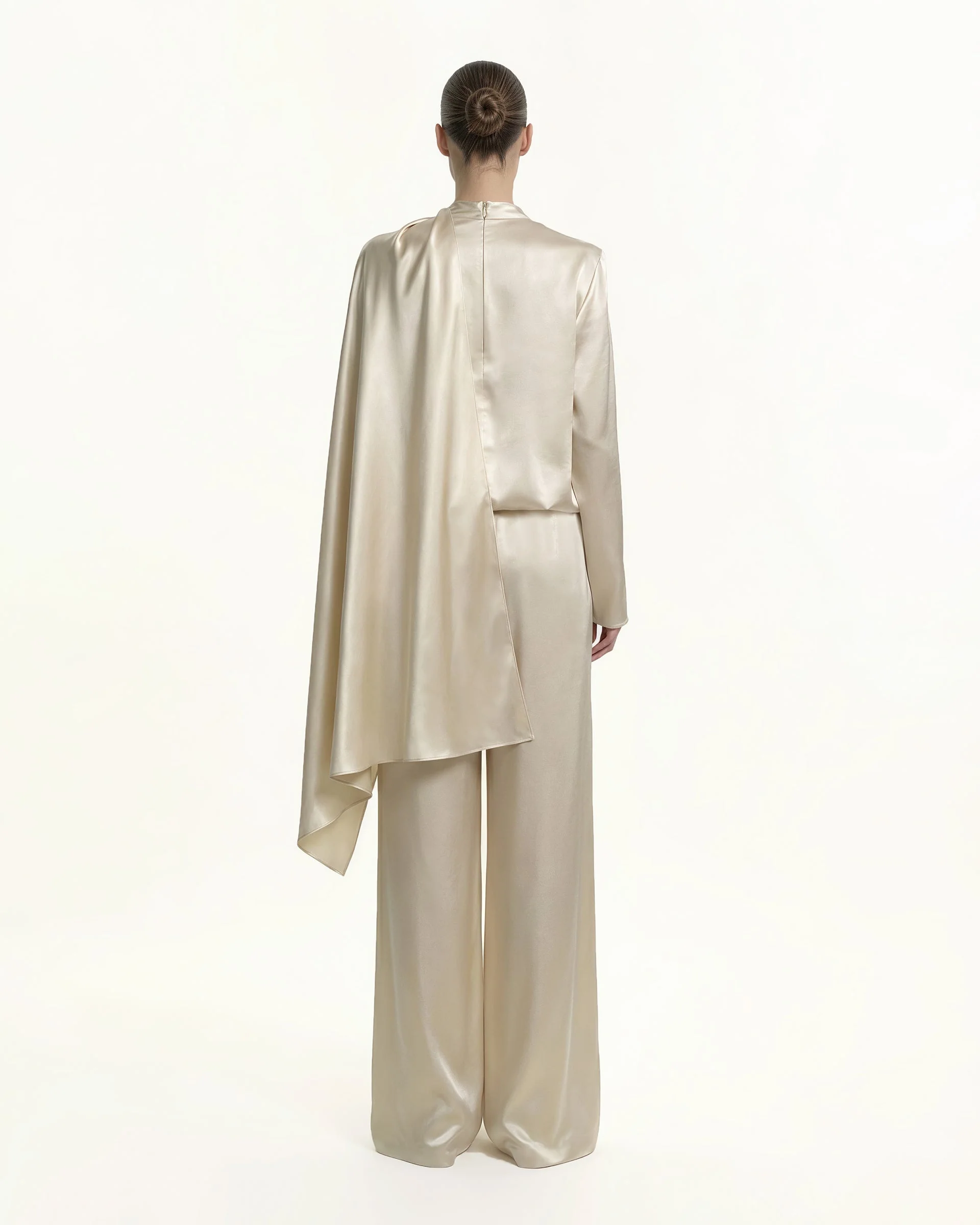 Asymmetric Drape High-Neck Cape Top - Cream