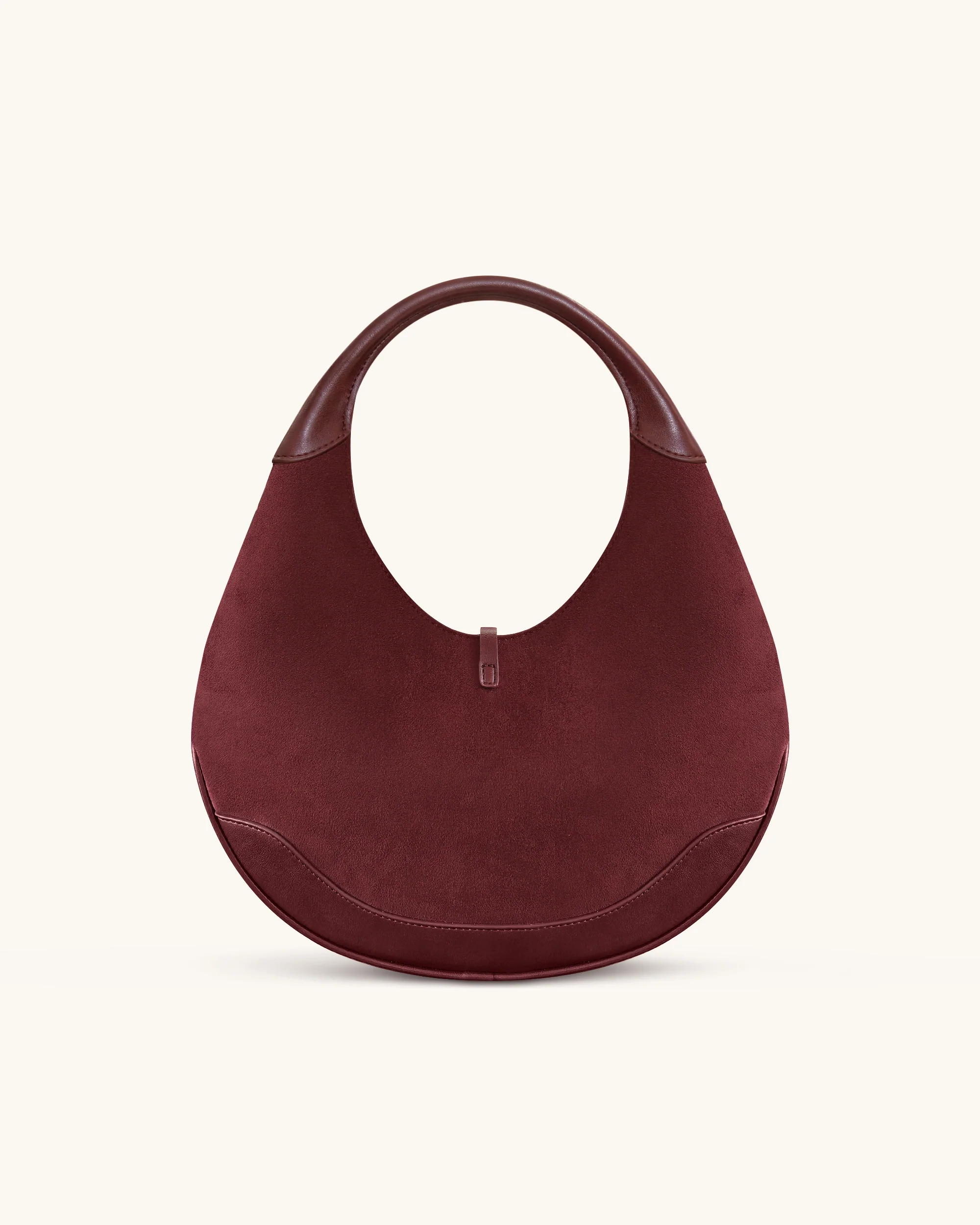 Colette Faux Suede Crescent Hobo Bag - Deep Claret