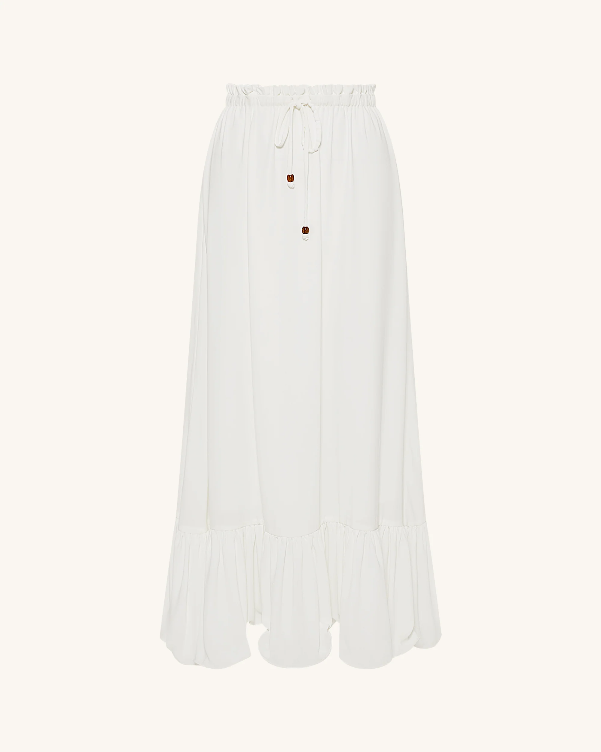 Drawstring Chiffon Maxi Skirt - White