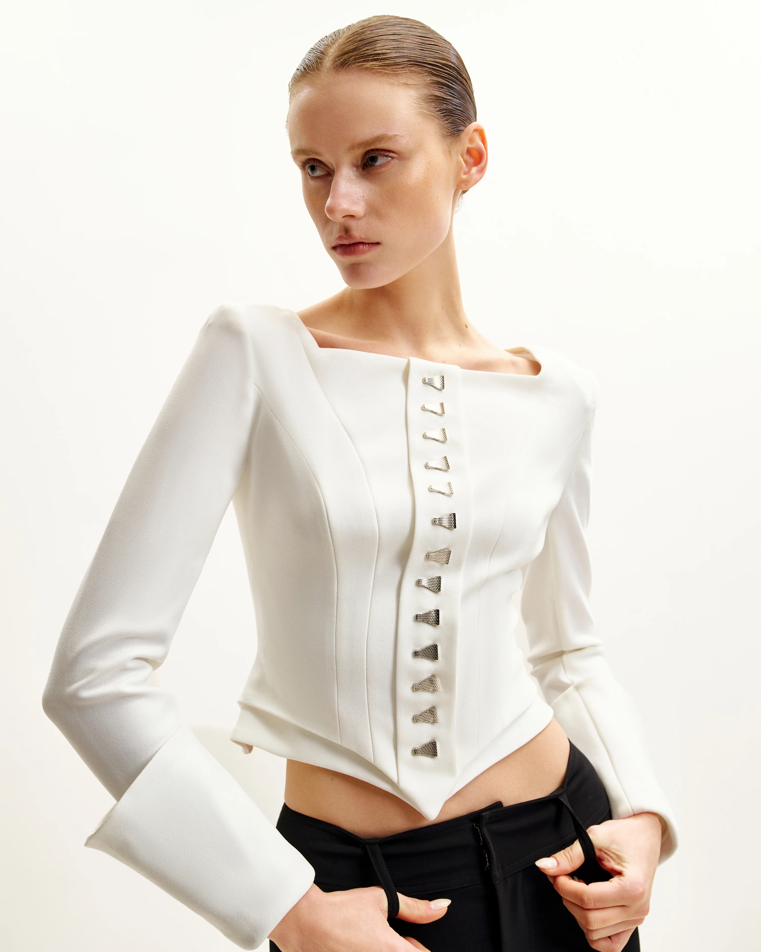 Lydia Corset-Inspired Blazer - White