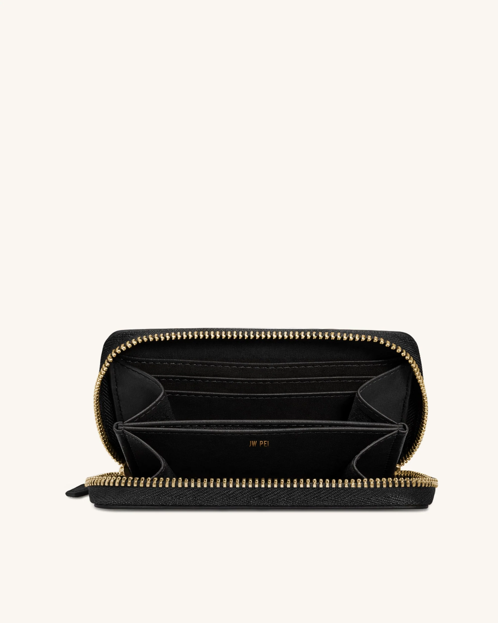 Maeve Dachshund Metal Emblem Zip Wallet - Black